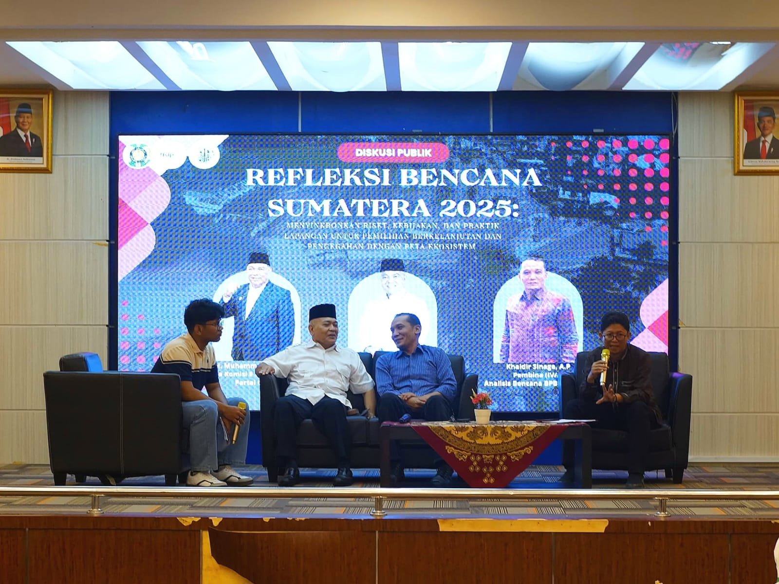 Kegiatan ini menghadirkan tiga narasumber, yaitu Aris (Staf Ahli Komisi E Dewan Perwakilan Rakyat Daerah Sumatra Utara), Asren Nasution (Akademisi), dan Khaidir Sinaga (Pembina Analis Bencana Badan Penanggulangan Bencana Daerah Provinsi Sumatra Utara).