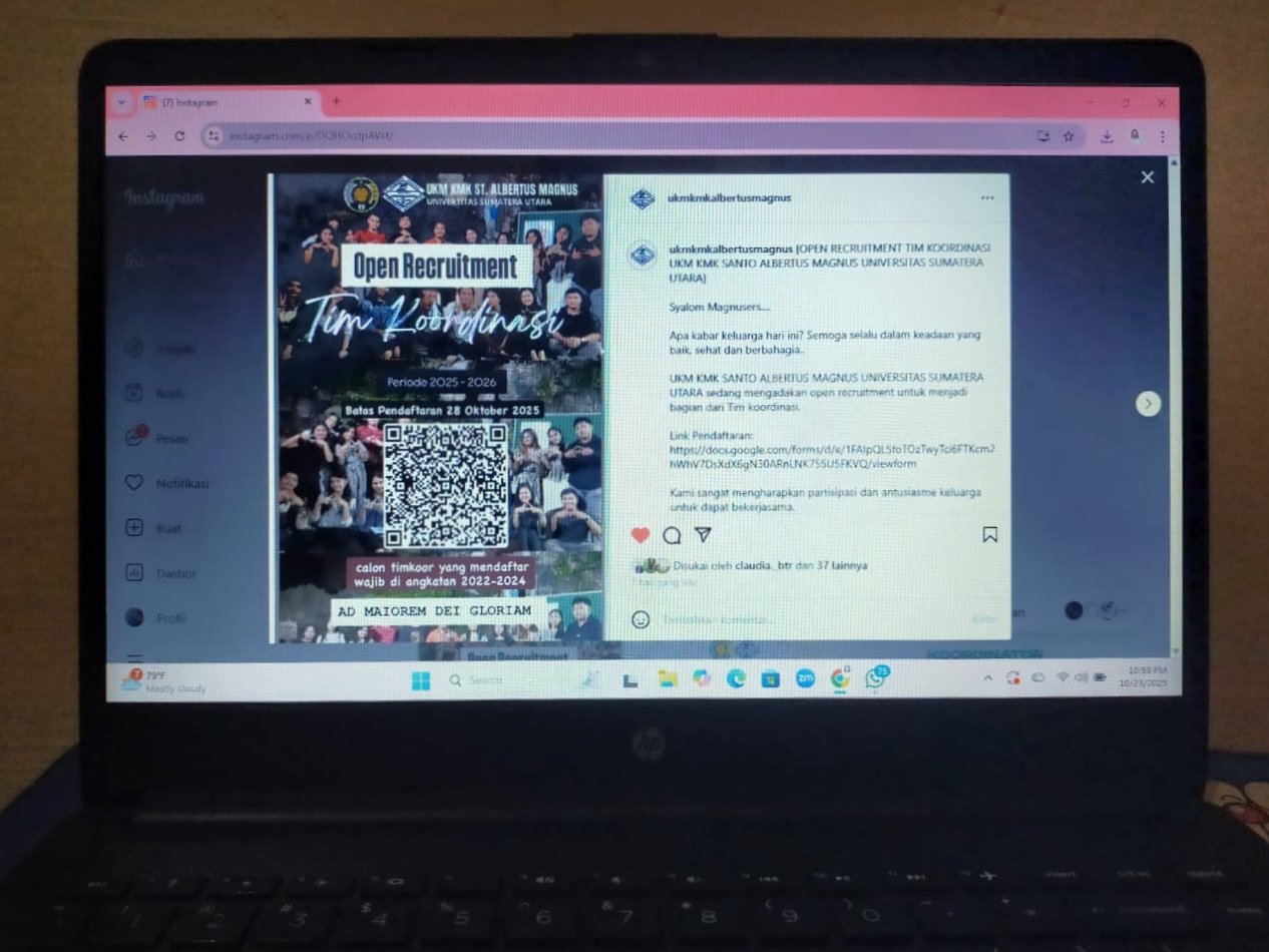 Pendaftaran sudah dibuka mulai dari tanggal 7–28 Oktober 2025. Kegiatan ini diperuntukkan bagi mahasiswa Katolik USU angkatan 2022–2024. Daniel juga menjelaskan, rekrutmen kali ini memiliki makna yang mendalam bagi keberlangsungan organisasi.